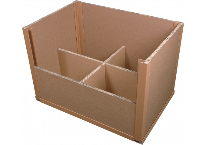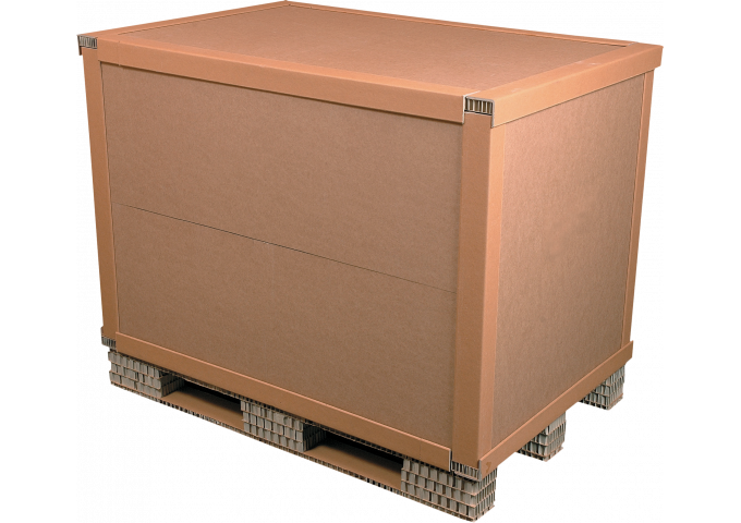 Lehký přepravní box na bázi voštin a lisovaných rohů.